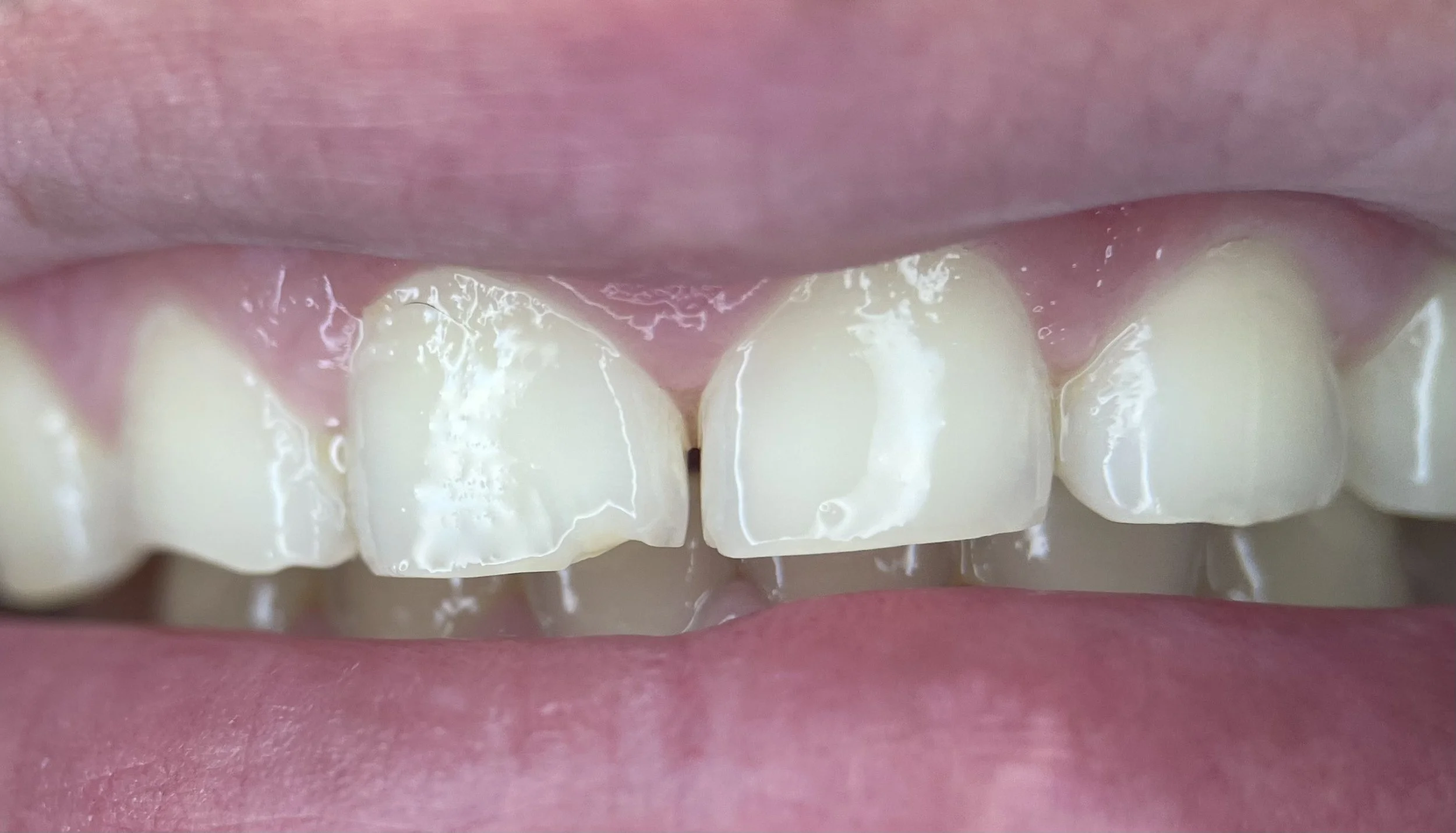 Before: A small enamel-only fracture. This can usually be treated with a small filling.